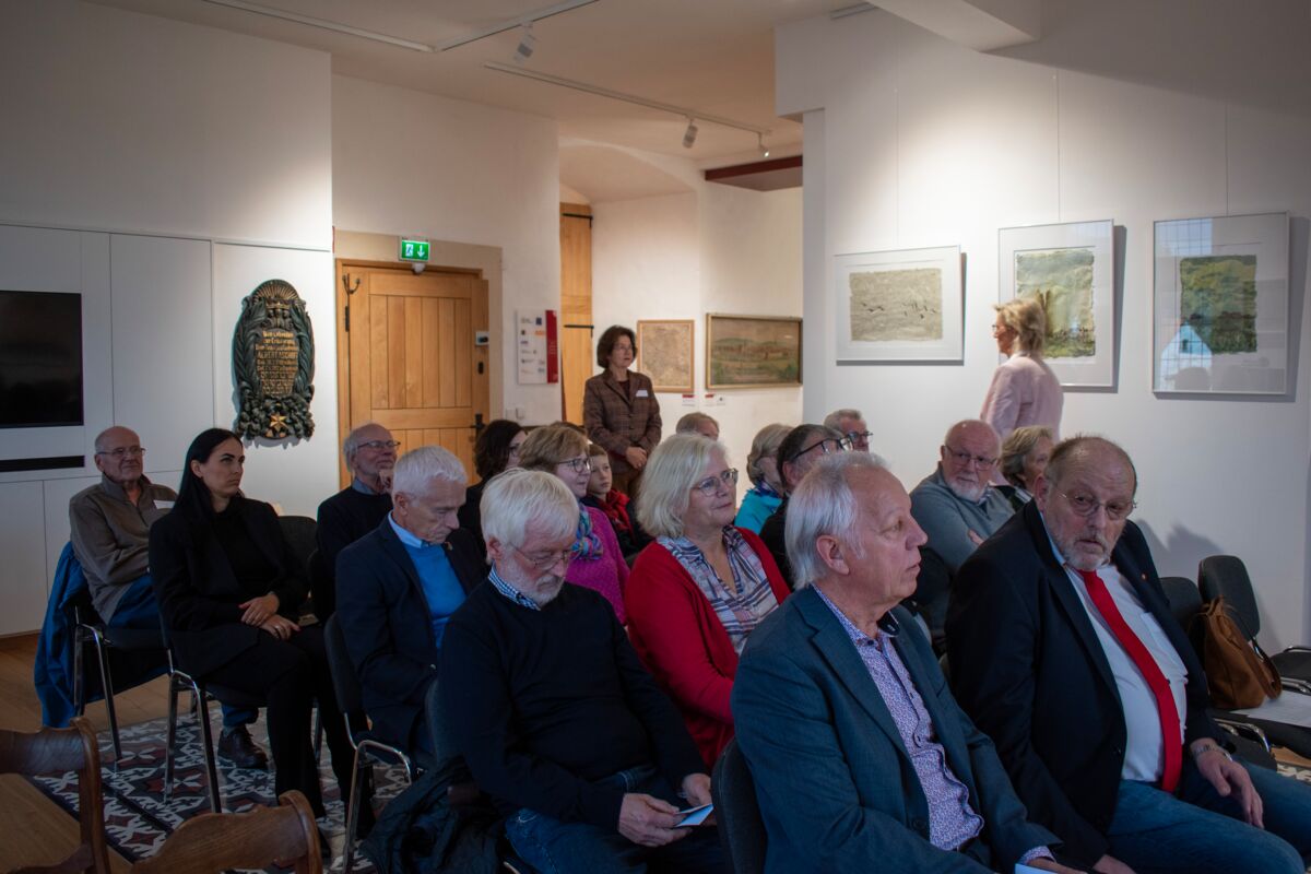 Frau Oelers-Albertin vom Heimatverein Horn führte die Gruppe durch das Burgmuseum und alle nutzten die Chance, die Fahne aus dem Jahr 1848 aus der Nähe im Original zu bestaunen.