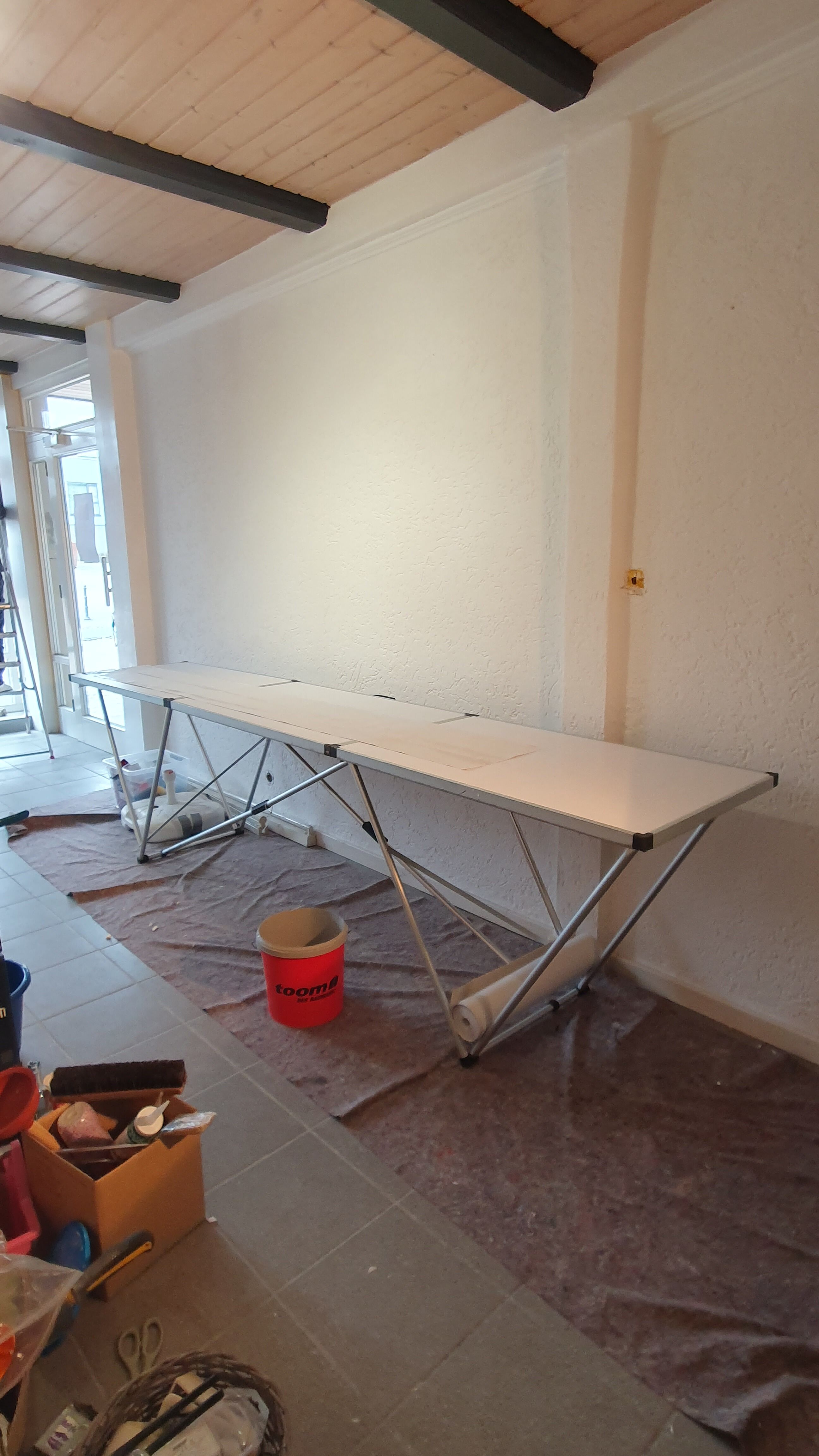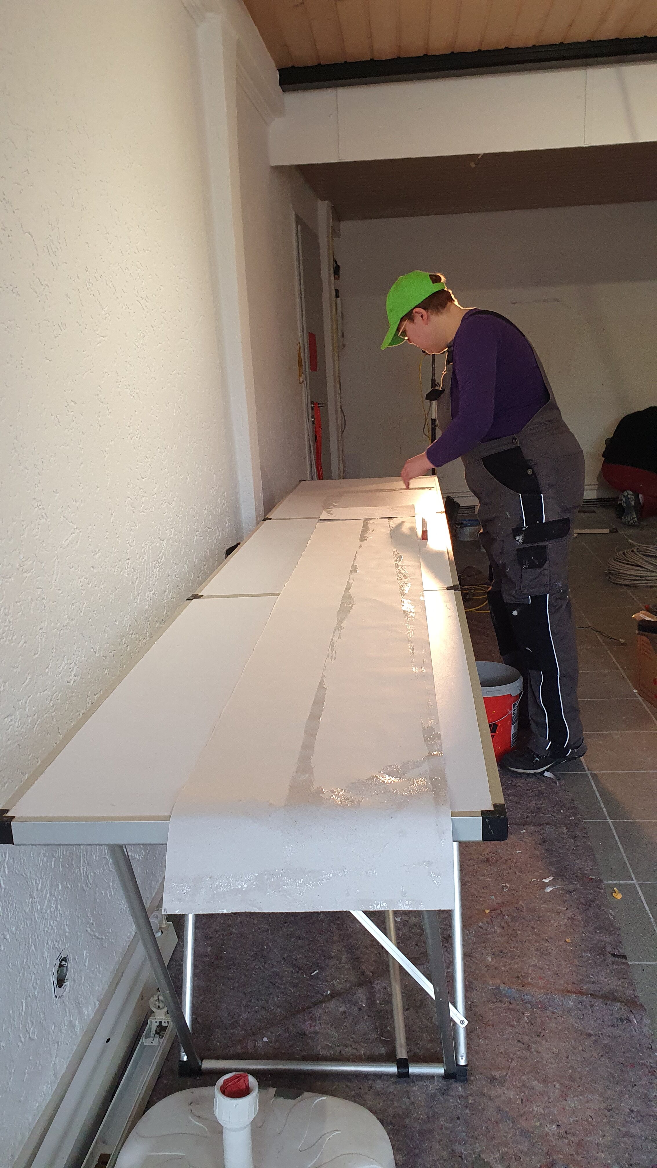 14.3. Heute Morgen wird schwer gestrichen und tapeziert.