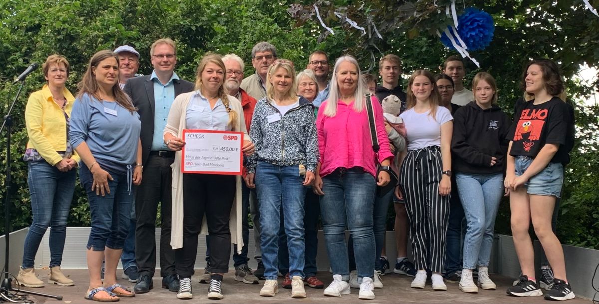 Das Haus der Jugend „Alte Post“ feiert Sommerfest und die SPD Horn-Bad Meinberg war ebenfalls zu Gast. Die Beschäftigten und Ehrenamtlichen freuten sich über eine Spende …